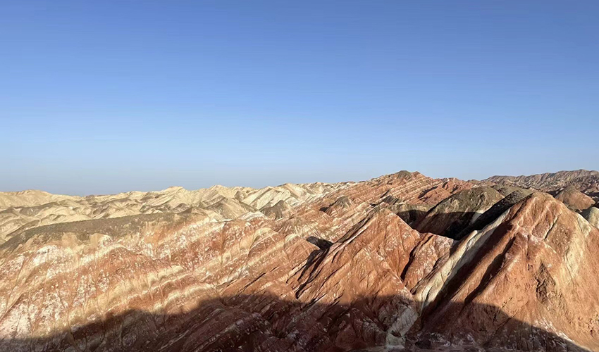 早餐后,乘車前往【張掖丹霞地質公園】(單程40公里,行車約1小時),張掖丹霞地貌面積約410平方公里,其中彩色丘陵面積約40平方公里。主要由紅色礫石、砂巖和泥巖組成,沿梨園河兩岸及其各支流(溝)連片分布,分為南北兩大群,中間夾張掖綠洲盆地,遙相呼應,成犄角之勢。北群地勢相對平緩,主要以單斜脊為主,以山體紋理、脈絡清晰見長;南群以交錯層理、四壁陡峭、垂直節理、色彩斑斕而稱奇,是張掖丹霞地貌的主要分布區。參觀結束后用中餐,餐后返回市區(約12:00)結束行程!