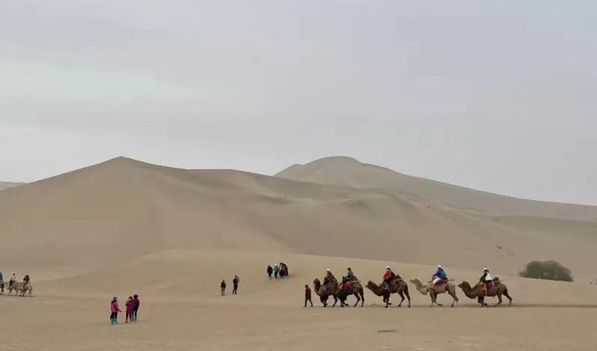 一同登高滑沙下,歡笑陣陣鳴沙樂。