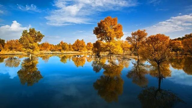 金塔沙漠胡楊林,位于甘肅省酒泉市金塔縣城以西的潮湖林場,為三北防護(hù)林體系的一部分,那里有著上萬畝人造胡楊林。胡楊林分布密集,長勢良好,規(guī)模居全省之冠,極具旅游開發(fā)價值。金秋十月的胡楊,綠色的樹葉有的已經(jīng)變黃,已經(jīng)變黃的胡楊樹,在湛藍(lán)的天空下,在荒蕪的沙漠中如陽光一般明媚燦爛,被評為甘肅省秋色最美的地方之一。