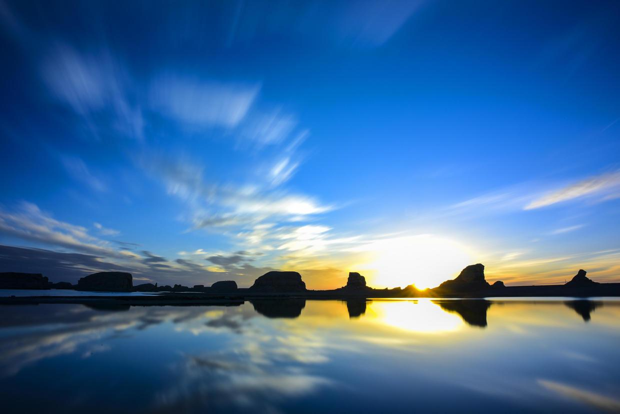 水上雅丹,一個因湖面升高被淹沒的雅丹地貌。四星景點收費稍微有些高了,但我覺得還是挺值的。人少是一大因素,園區設施也都比較新,有擺渡車從大門接送游客到中心景區,而且這里的景色真是獨一無二的。水上雅丹是魔鬼城里的一股清流,不僅有生命安然存活,還能讓游客找到做主人的感覺,幾個人就能承包一個山包,山包越高,越容易獨自享有。